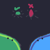 Collect the green stuff or heart pickups, avoid the red stuff and the laser. Grow your magnetic field as you level up. Careful, you move as a unit with your second moon.